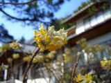 和紙の原料として知られ枝が三つに分かれていることからついた名前。春早くにマリ状に花を咲かせます |
