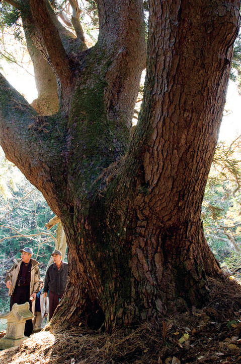 | 京都市の例 左京区 「大悲山の三本杉」 ![]() ▲HP「巨樹の花のページ」より転載 |