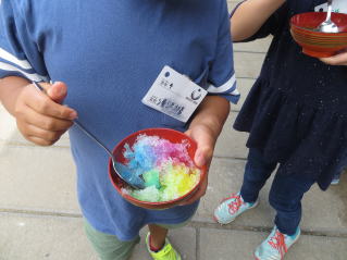 | ▲粘土工作のあとは、かき氷 かけるシロップは赤・青・黄色・白いカルピスもあるよ~ | ||||