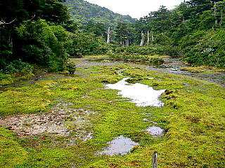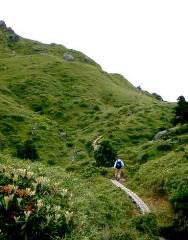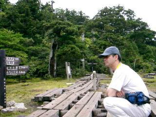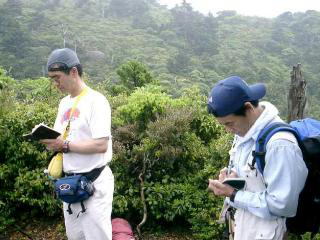 | ■6月14日(金) 宮之浦岳登山 旅館5:00(タクシー5000円くらい)~6:00登山口・・・6:40淀川小屋(よどこや)7:00・・・7:50高盤岳展望台・・・8:12小花之江河…9:30高倉君遭難碑・・・11:30宮之浦岳山頂12:20・・・13:30黒味岳分岐・・・花之江河・・・14:55淀川小屋・・・15:42登山口(タクシー)~16:30旅館 「ひと月に35日雨が降る」と言われる屋久島だが、今日はさいわい降られなくてすんだ。一日高曇りの空で、視界もきいて櫻島や佐田岬、喜界ヶ島などがうっすらと見えた。宿に帰ったのは縄文杉コースより早かった。 |