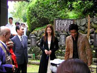 | 墓参する稲森いずみさん・岸谷五朗さん | ![]() |