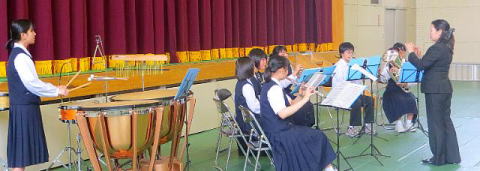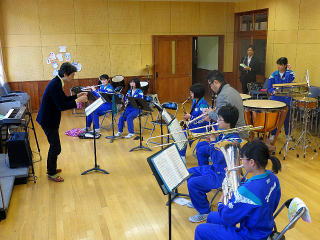 | ●7日(火) | 作曲家福田洋介氏が倉渕中学校で指導 東善寺の依頼で吹奏楽曲の新曲 「小栗のまなざし―小栗上野介公に捧ぐ―」 を作曲した福田洋介氏は、中学生を直接指導したいと、指揮者の松元宏康氏とともに倉渕中学校を訪問し、吹奏楽部生徒の練習を直接指導した。 昼ごろに松元氏の車で東善寺に到着、昼食・墓参・見学の後、午後4時から中学校へ入り、松本操校長、熊井和子担当教諭に迎えられ、音楽室で生徒の練習を直接指導した。「ここはタン、タン、タ~ン、こういうふうに演奏してほしい」と伝え音をアレンジすると、さっきよりもぐっとよくなったハーモニーが生まれる。見ていて、こんなにも違うものか!と感動する場面だった。 「作曲家が音を書き落としても、演奏者の力を借りなければ曲は表現出来ません。僕はどの音も一つ一つ一生懸命書いたから、みんなが一生懸命吹けば、、聴く人も一生懸命聞いてくれますよ」 福田氏の言葉に、生徒は真剣な面持ちで聞き入っていた。 松元氏もクラリネットを持参し、生徒の練習に参加して、アドバイスを与えてくれました。 ![]() 関連ページ 作曲家福田洋介氏のブログ(リンク) 上毛新聞記事「小栗上野介を音楽で伝える 高崎倉渕中26日に初演奏」(リンク) 読売新聞記事「小栗上野介にささぐ吹奏楽」(リンク) 朝日新聞記事「小栗の生き様吹奏楽で表現」(リンク) |