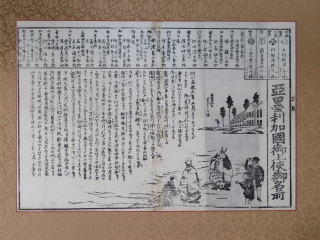 瓦版「使節の帰国」 東善寺蔵 ![]() ▲右下、5人の人物は出発を伝える瓦版と同じ絵だから、元の絵の右上にあった蒸気船の絵を外して西洋館の絵と入れ替えた(手抜きした)とわかる。 |